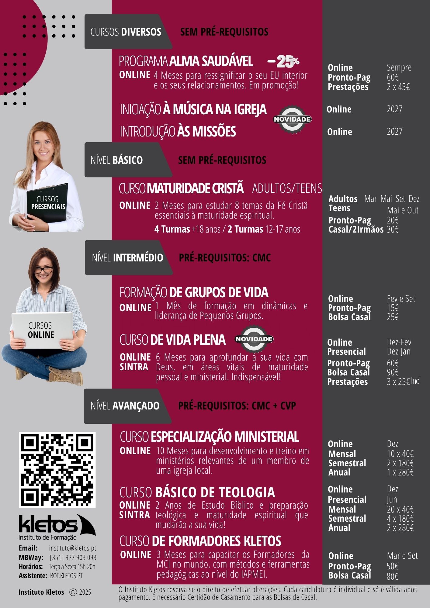 Esclarecimentos pelo email: instituto@kletos.pt (Terça a Sexta das 15h às 20h)